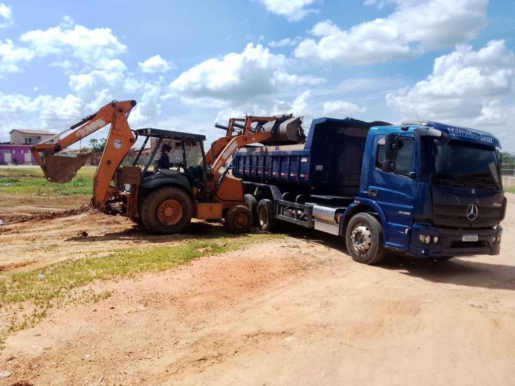 Já no bairro Matadouro, os trabalhos seguem na obra da nova Feira do Gado, onde está sendo executada a etapa de implantação do novo piso, dando continuidade à obra modernizar e estruturada do equipamento público, que em breve será entregue aos comerciantes de animais (bovinos e caprinos).