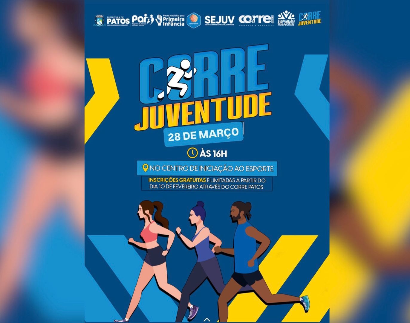 A energia da juventude patoense vai ganhar as ruas nos próximos dias com a realização do Corre Juventude, evento que promete reunir jovens e adolescentes em um momento de esporte, integração e incentivo a hábitos saudáveis. A corrida acontecerá nas ruas ao redor do Centro de Iniciação ao Esporte de Patos e deve mobilizar participantes de diferentes bairros da cidade.