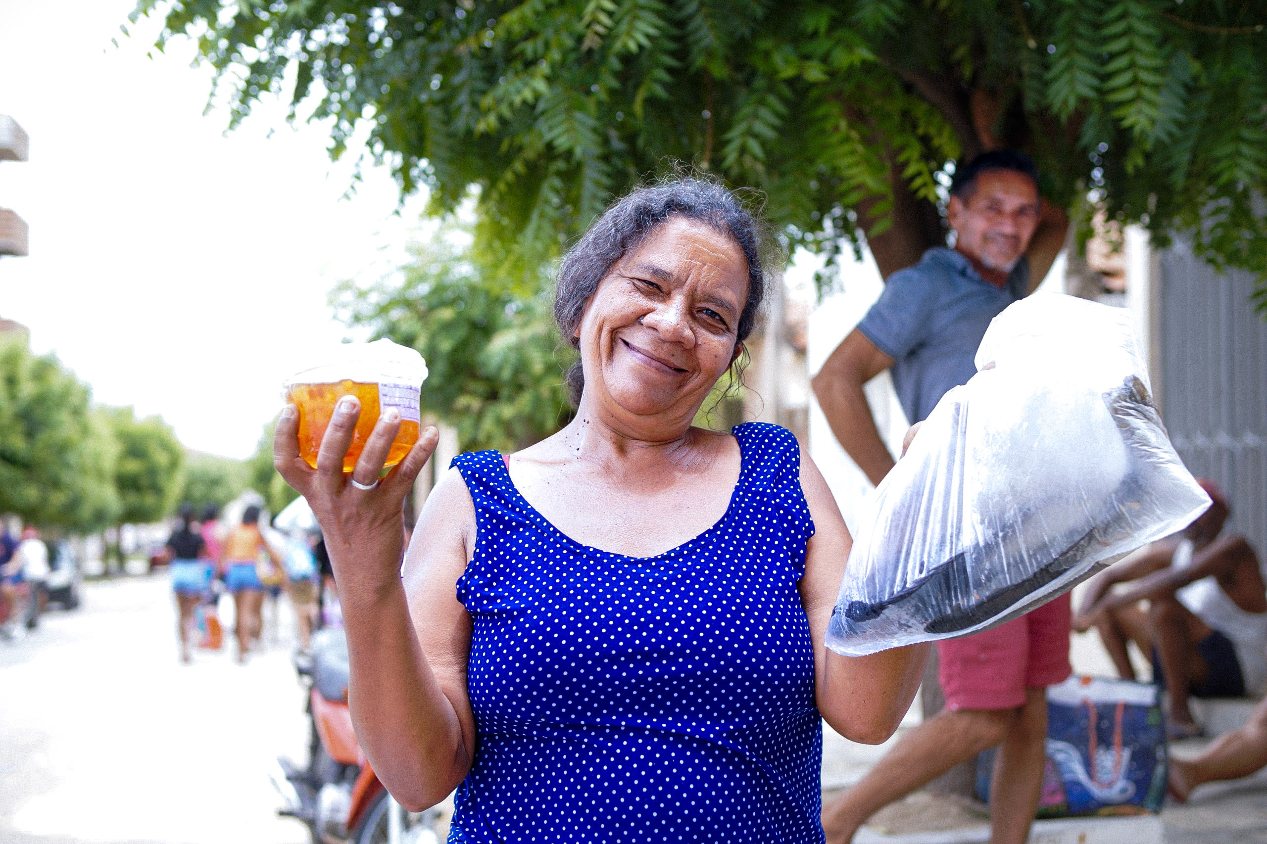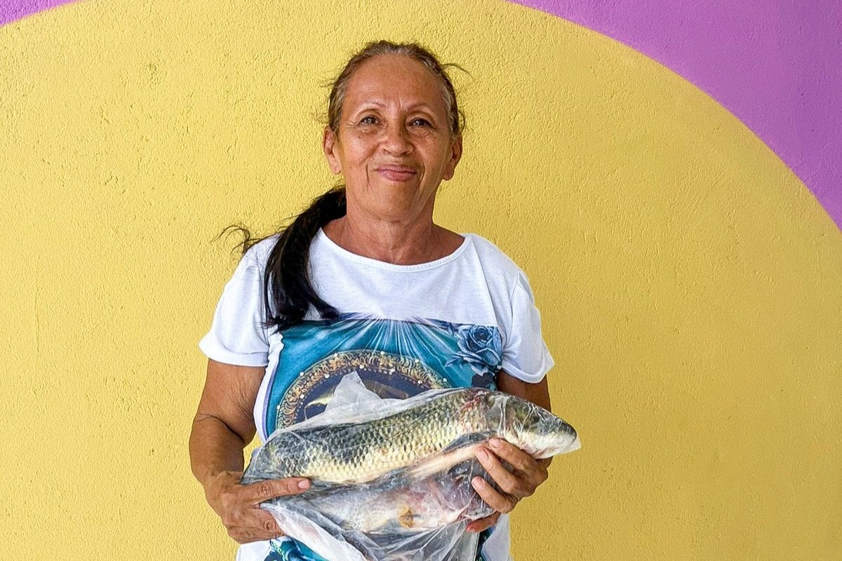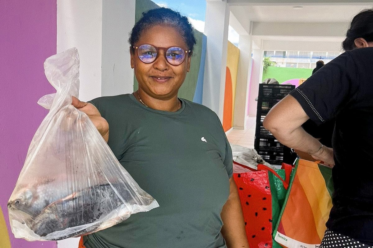 Ao todo, foram entregues mais de 2 toneladas de pescado, além de aproximadamente 58 kg de verduras, cerca de 1.630 kg de batata-doce, mais de 1.500 kg de abóbora e mais de 300 kg de doces, somando os dois territórios atendidos.