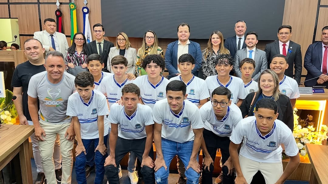 Durante a sessão na Câmara Municipal, o vereador Jonatas Kaiky ressaltou o papel da escola no incentivo ao esporte e na formação cidadã dos estudantes, destacando que os resultados são fruto de dedicação, disciplina e apoio da gestão escolar.