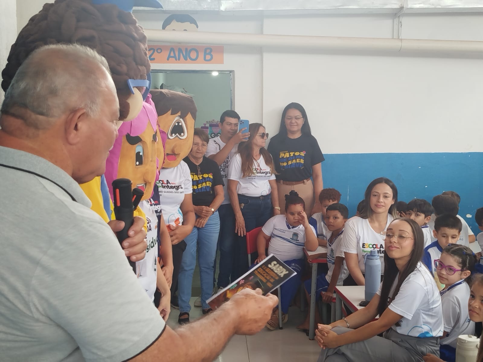 Jesuíta Guedes explicou a iniciativa. “É uma estratégia pedagógica, onde o Meta Aprender está levando o prefeito, o vice-prefeito e a secretária de educação, juntamente com o mascote Sabix. Através de uma contação de história, unimos a aprendizagem com a motivação e dizemos a essas crianças que estudar vale a pena. Mostramos a elas que, através do estudo, é possível se tornarem o que quiserem”, destacou.