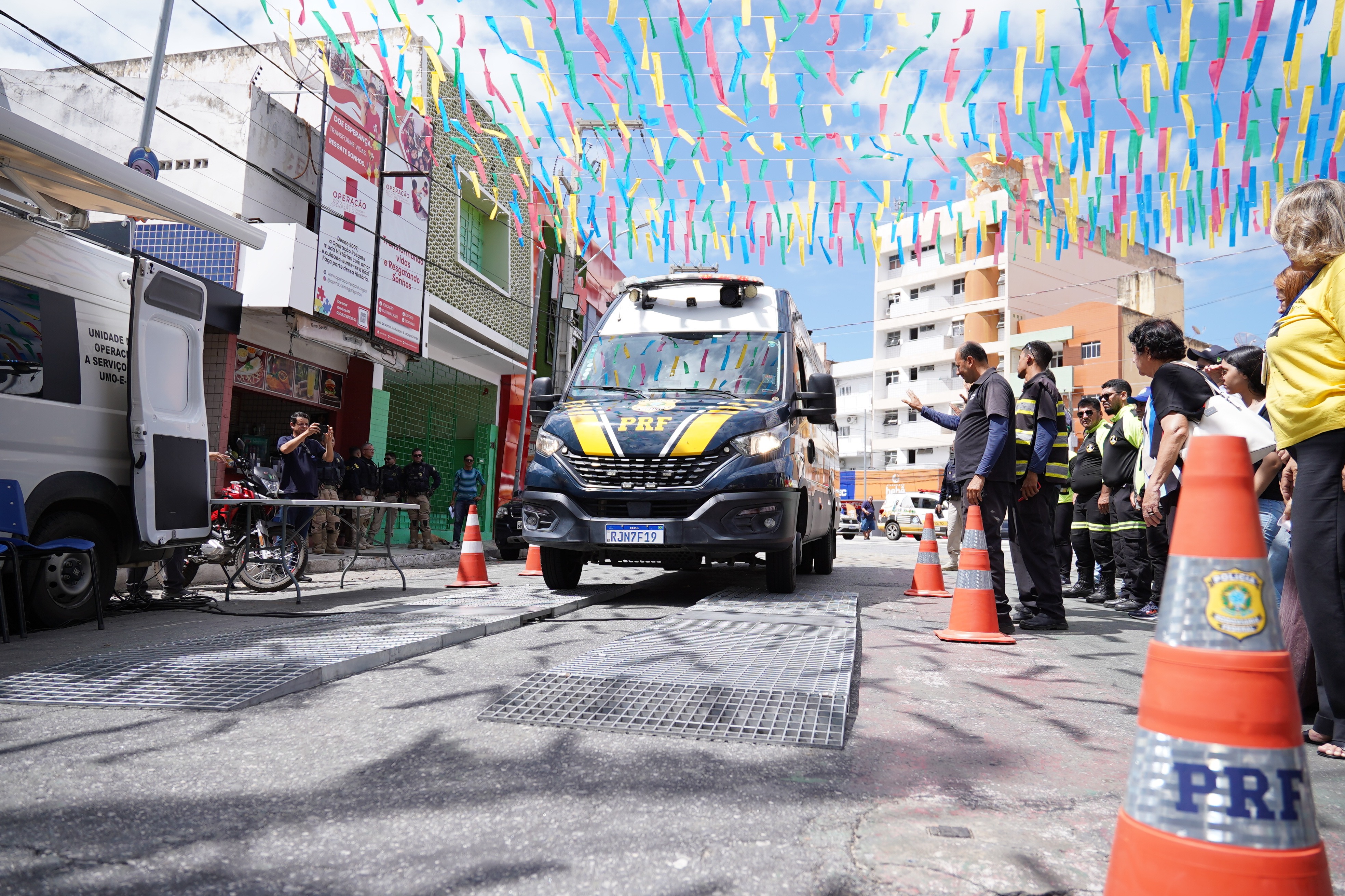 Durante o percurso e na chegada ao local, viaturas das instituições participantes ficaram expostas para visitação pública. Ao final da programação, o Departamento Nacional de Infraestrutura de Transportes (DNIT) realizou uma demonstração com a balança móvel, equipamento utilizado para a fiscalização de peso em veículos de carga nas rodovias.