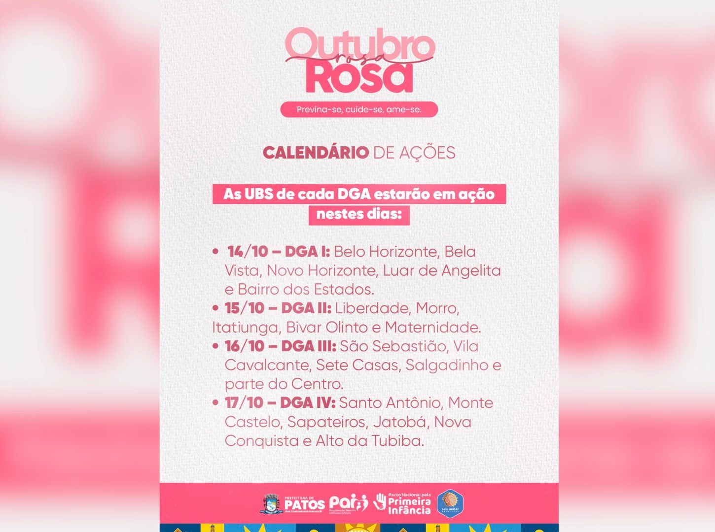 16/10 – DGA III: bairros São Sebastião, Vila Cavalcante, Sete Casas, Salgadinho e parte do Centro.