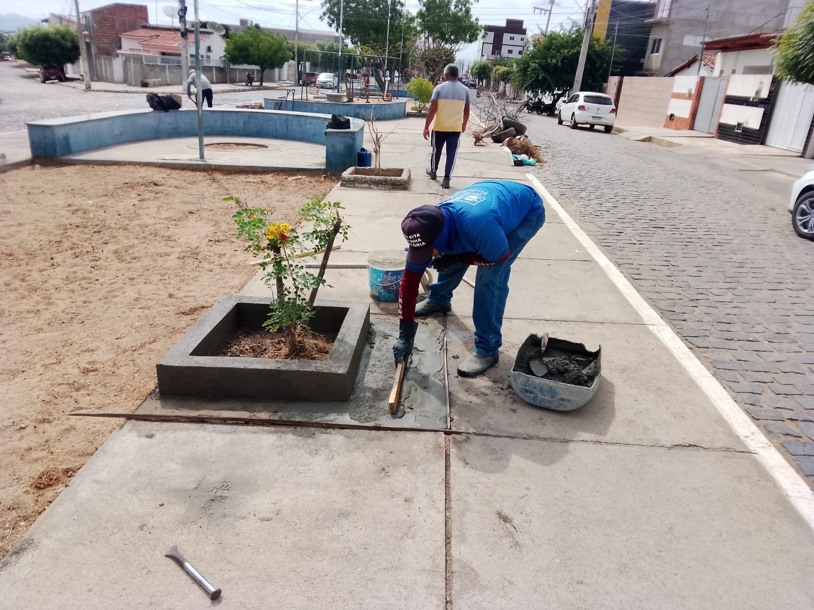 Entre as ações realizadas, as equipes atuaram com reparos na Praça do Noé Trajano, garantindo mais segurança, organização e melhor aproveitamento do espaço pela população.