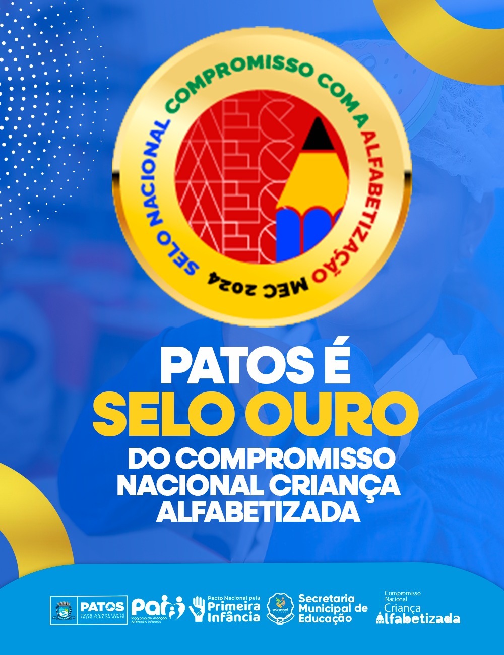 Os dados que levaram Patos à conquista do selo incluem aumento no índice de alfabetização, redução das desigualdades de aprendizagem e a melhoria da infraestrutura escolar. O programa também proporcionou formações específicas para os docentes e acesso a materiais didáticos alinhados à Base Nacional Comum Curricular (BNCC).