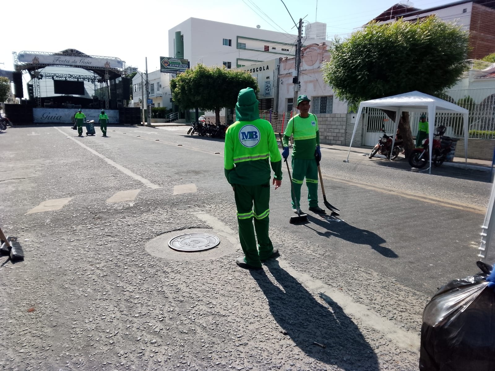 Limpeza para eventos: A equipe da MB iniciou o serviço de limpeza geral do pavilhão e de toda a extensão da área da festa de Nossa Senhora da Guia, trabalho que será mantido durante os 10 dias de evento.