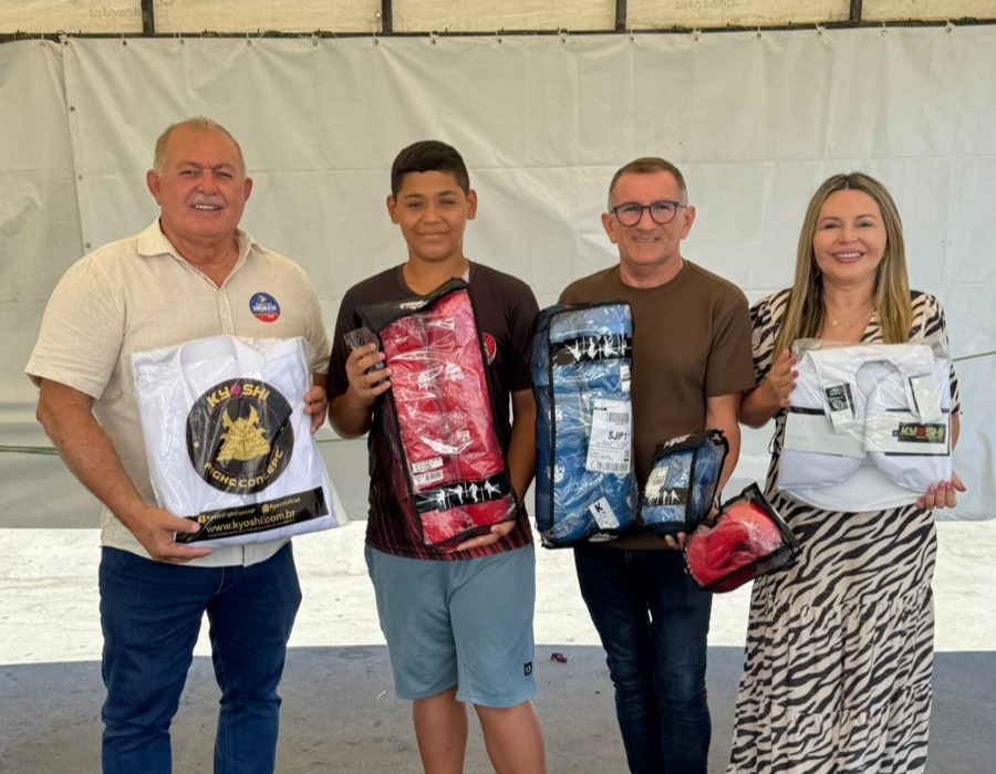 Durante a entrega, que contou com a presença do vice-prefeito Jacob Souto, do secretário executivo de Esportes Dan De Souza e da secretária de Educação Adriana Carneiro, o atleta recebeu kimonos e faixas que serão utilizados nas disputas nacionais.