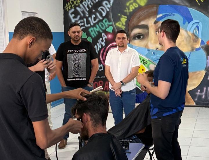 A ação de encerramento aconteceu no Centro Pop, equipamento da rede de assistência social que atende pessoas em situação de rua. No local, os alunos colocaram em prática os conhecimentos adquiridos durante o curso, realizando cortes de cabelo gratuitos, em uma atividade que uniu formação profissional, estágio supervisionado e ação social.