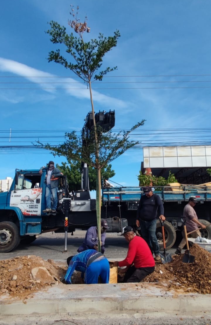 A iniciativa contemplou o plantio de espécies nativas e exóticas, entre elas ipê, sete-copas e resedá, escolhidas de forma estratégica para contribuir com o paisagismo urbano, o conforto térmico e a melhoria da qualidade ambiental da via.