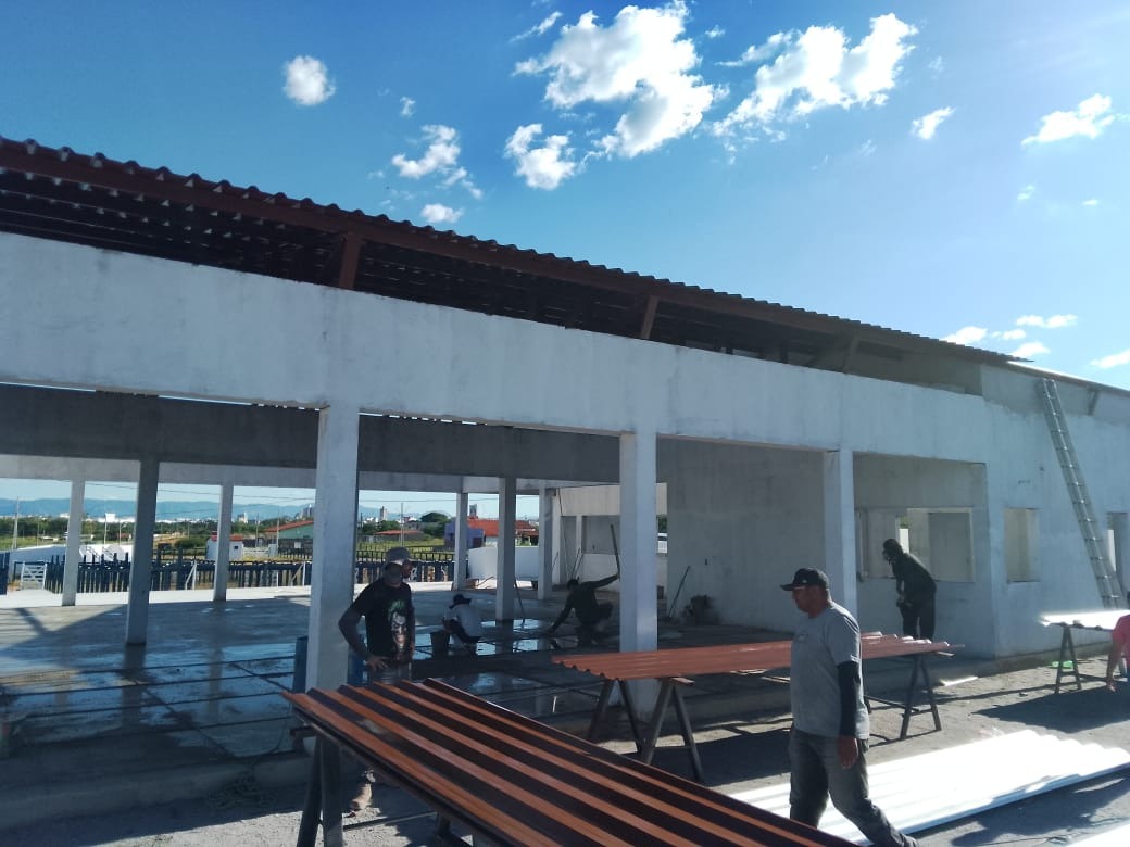 Um dos principais destaques do dia foi a continuidade dos serviços na nova Feira do Gado, oficialmente denominada Centro de Comercialização de Animais e Produtos Agropecuários, localizada no bairro Matadouro. No local, as equipes executaram a instalação da parte elétrica, a implantação do piso e deram andamento à colocação do telhado da estrutura, etapa fundamental para o funcionamento do espaço.