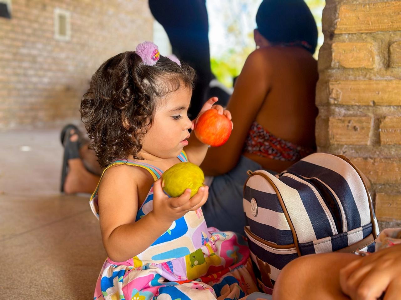 A atividade foi conduzida pela coordenadora da Primeira Infância, Tia Aline e a facilitadora Tia Eduarda, ao lado das visitadoras que acompanham as famílias no dia a dia. Juntas, elas criaram um ambiente leve e seguro para que cada criança pudesse aproveitar a experiência no seu próprio tempo, fortalecendo vínculos familiares e comunitários.