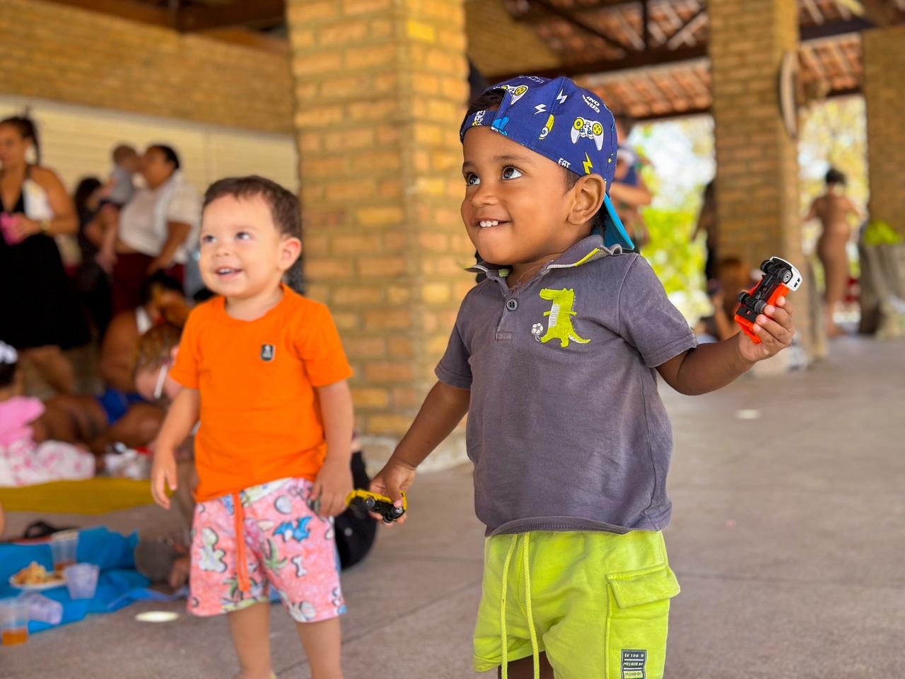 Desta vez, as oficinas, que normalmente acontecem dentro do CRAS, ganharam um novo cenário. Ao ar livre, as crianças puderam explorar a natureza, correr com liberdade e brincar de forma espontânea, vivenciando tudo o que o brincar livre proporciona: autonomia, criatividade, convivência e descobertas que só a infância permite.