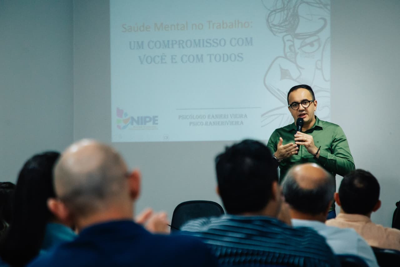 Responsável pela palestra de abertura, o psicólogo Raniere Vieira explicou que discutir saúde mental no serviço público é essencial diante dos desafios enfrentados diariamente pelos profissionais.