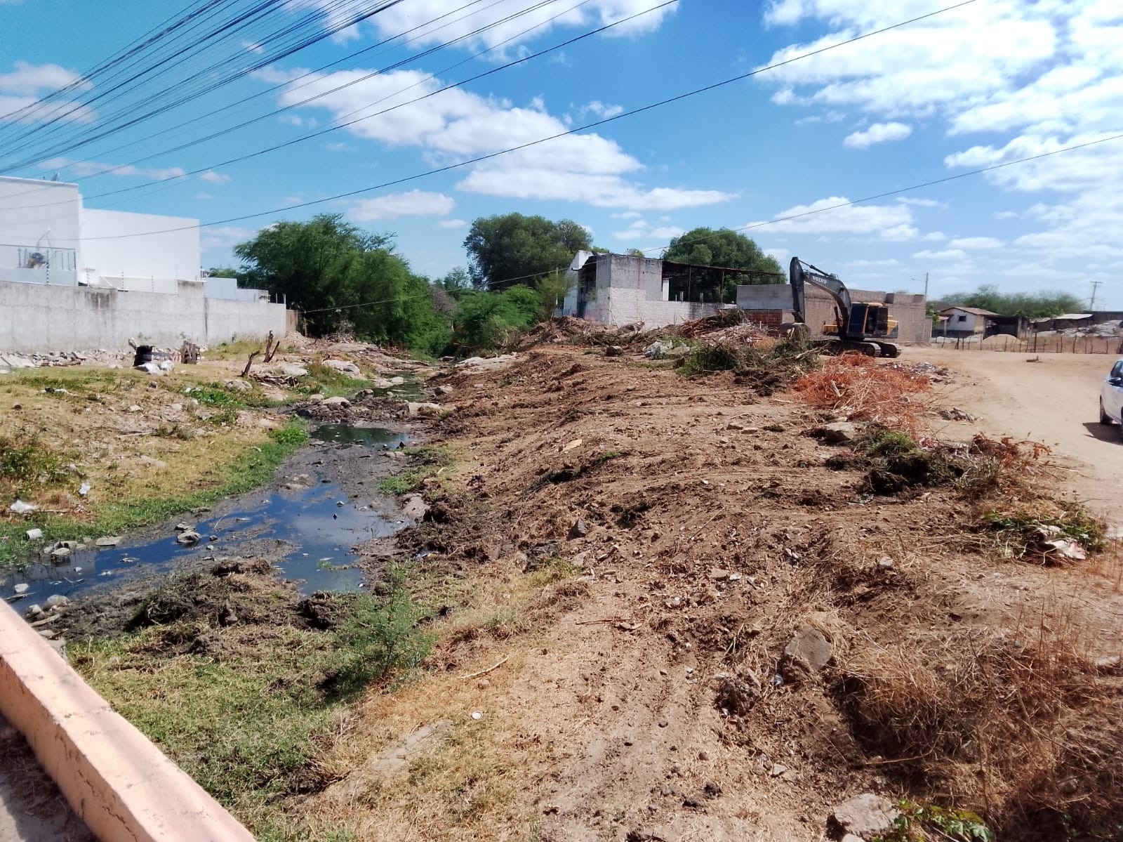 As equipes executaram a retirada de entulhos na Rua Alexandrino Rodrigues, no bairro Santo Antônio, às margens do Rio Espinharas, contribuindo para a limpeza da área e prevenção de acúmulo de resíduos.