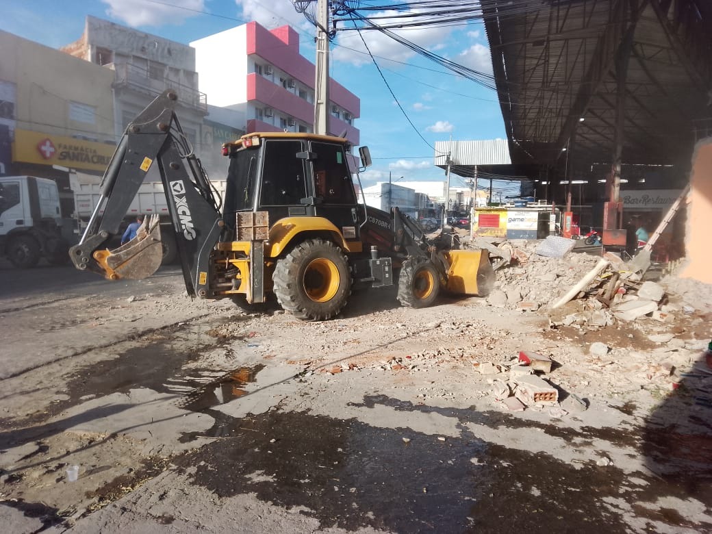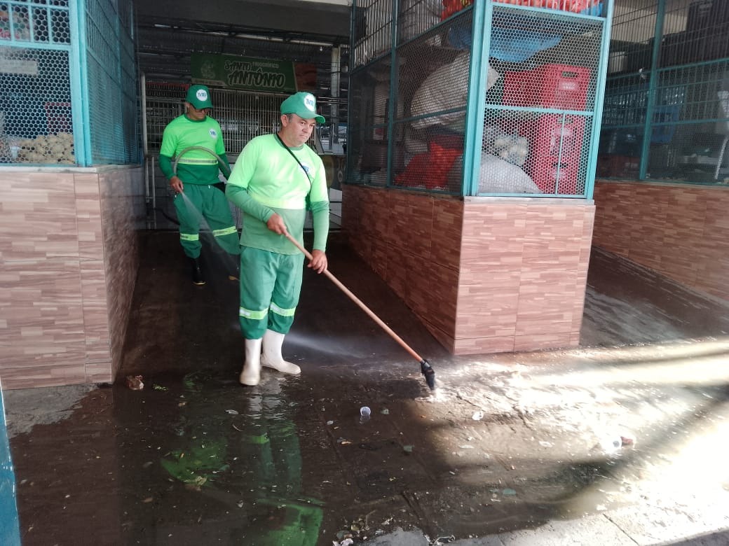 As equipes executaram retirada de entulho e limpeza interna no Mercado Público, além da remoção de resíduos no campo de totó, próximo ao CIE, no bairro Monte Castelo.