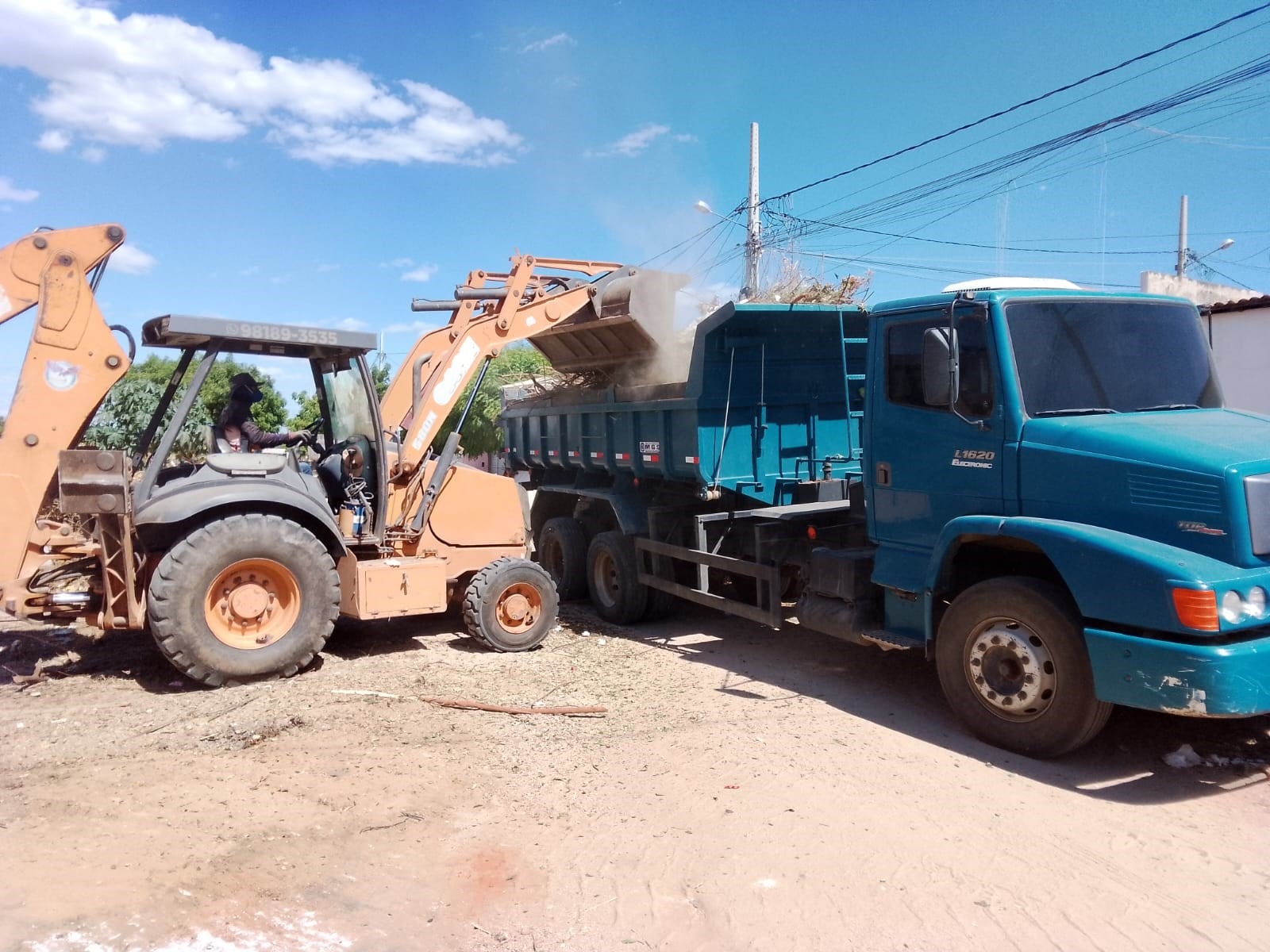 Além disso, foi realizada a retirada de entulhos na Rua Miguel Imperiano, no bairro São Sebastião, contribuindo para a manutenção da limpeza urbana e a prevenção de pontos de acúmulo de resíduos.