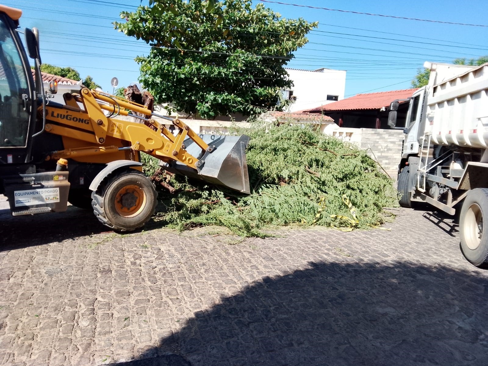 Em parceria com a Secretaria de Meio Ambiente, foi realizada a retirada de uma algaroba na Rua Epaminondas Rocha, no bairro Belo Horizonte.