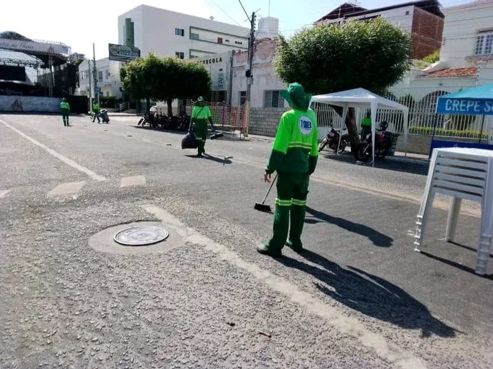Também foi feita a limpeza e varrição no centro da cidade após a programação festiva da padroeira, assim como a retirada de entulhos na Rua Laurentino Pereira, no Jardim Europa.