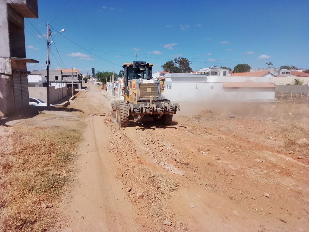 No Salgadinho, as equipes executaram serviço de terraplanagem na Rua Professora Terezinha Monteiro do Nascimento, garantindo melhores condições de tráfego para moradores e veículos que circulam pela via.