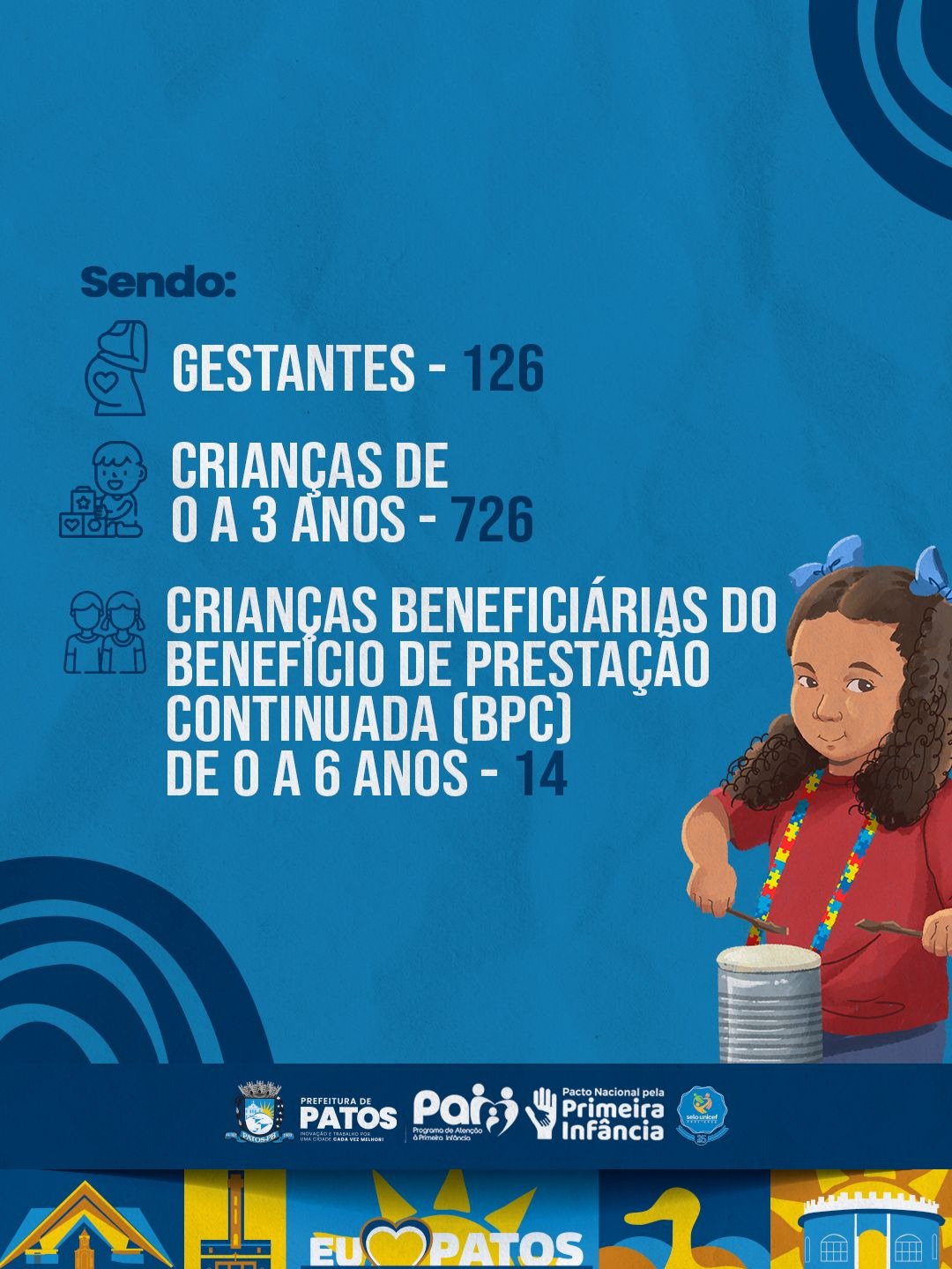 Do total de atendimentos, 126 foram gestantes, 756 crianças de 0 a 3 anos e 14 crianças de 0 a 6 anos beneficiárias do Benefício de Prestação Continuada (BPC), garantindo um acompanhamento próximo, especialmente para famílias em situação de maior vulnerabilidade social.